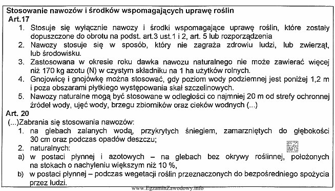 Na podstawie analizy wyciągu z Ustawy o nawozach i nawożeniu określ, przy jakim poziomie wód w gruncie można stosować nawozy naturalne w postaci płynnej.