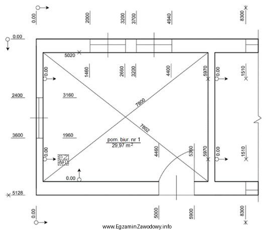 Na podstawie szkicu inwentaryzacyjnego określ wymiary pomieszczenia biurowego nr 1.