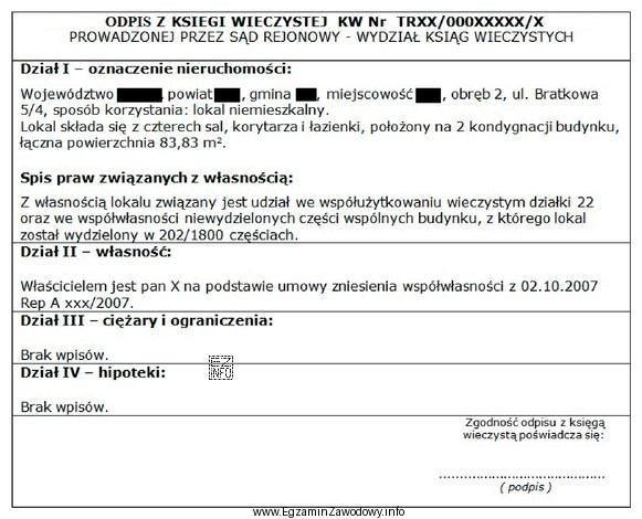 Na podstawie odpisu z księgi wieczystej wskaż stan prawny nieruchomości.