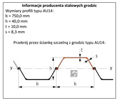 Na podstawie zamieszczonych informacji producenta stalowych grodzic określ, ile profili typu AU14 potrzeba do wykonania ścianki szczelnej długości 189 m.