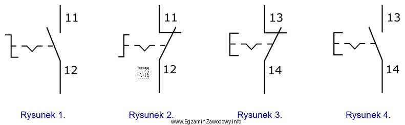 Który z rysunków przedstawia prawidłowo narysowany i opisany symbol graficzny przełącznika z zestykiem NC, przełączanym przez przekręcenie?