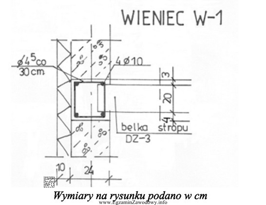 Wymiary przekroju wieńca W-1 przedstawionego na rysunku wynoszą