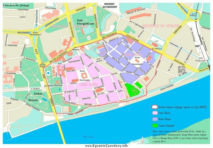 Fragment mapy przedstawia wpisany na listę UNESCO Średniowieczny Zespół Miejski