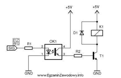 izolowania optycznego mikrokontrolera SIG od przekaźnika K1