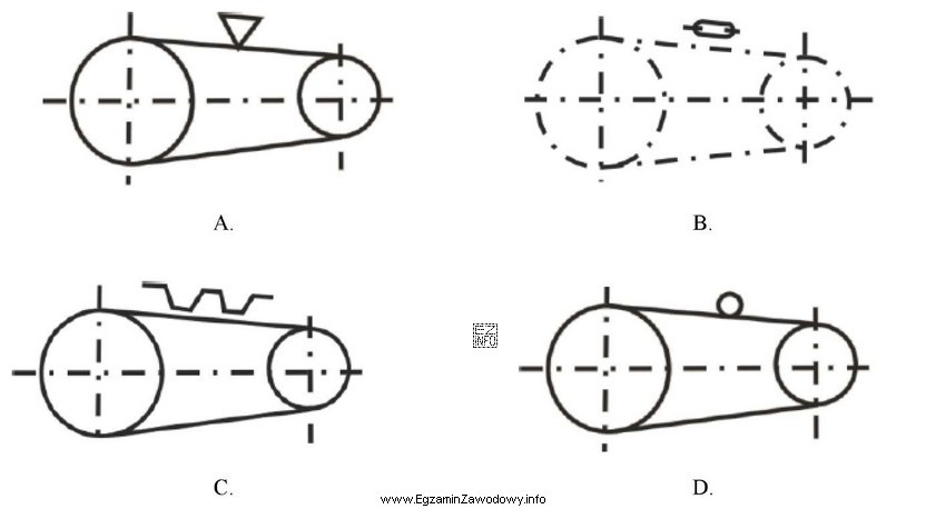 Którego symbolu graficznego należy użyć, aby przedstawić na schemacie przekładnię z pasem klinowym?