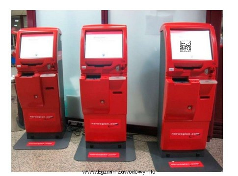 Przedstawione na zdjęciu urządzenia self-check-in służą w terminalu lotniczym do