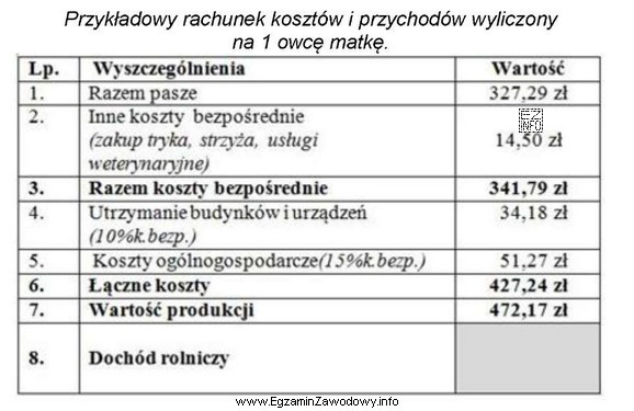 Oblicz dochód rolniczy na 1 owcę matkę.
